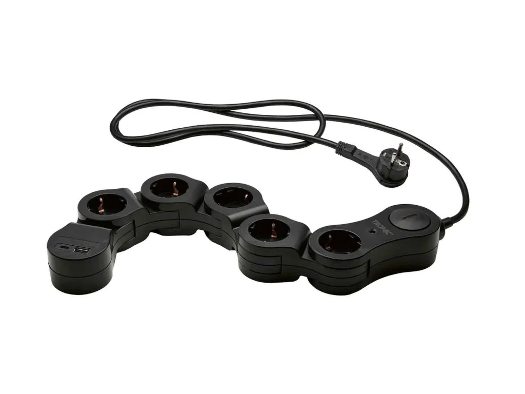 Otro de los accesorios que puedes comprar solo en tienda es una regleta flexible que puedes comprar en dos colores, tanto en color blanco como negro a un precio de 15.99€. Este tipo de regletas los supermercados Lidl las han llevado en otras ocasiones y se caracteriza por tener un puerto USB tipo A y USB tipo C. Tiene piloto de control de protección, interruptor iluminado de encendido y apagado, pero se trata de artículos de la marca Tronic.