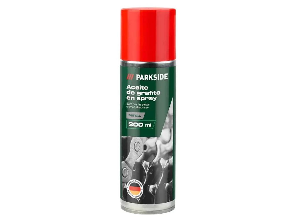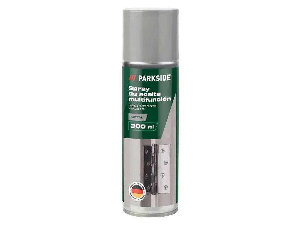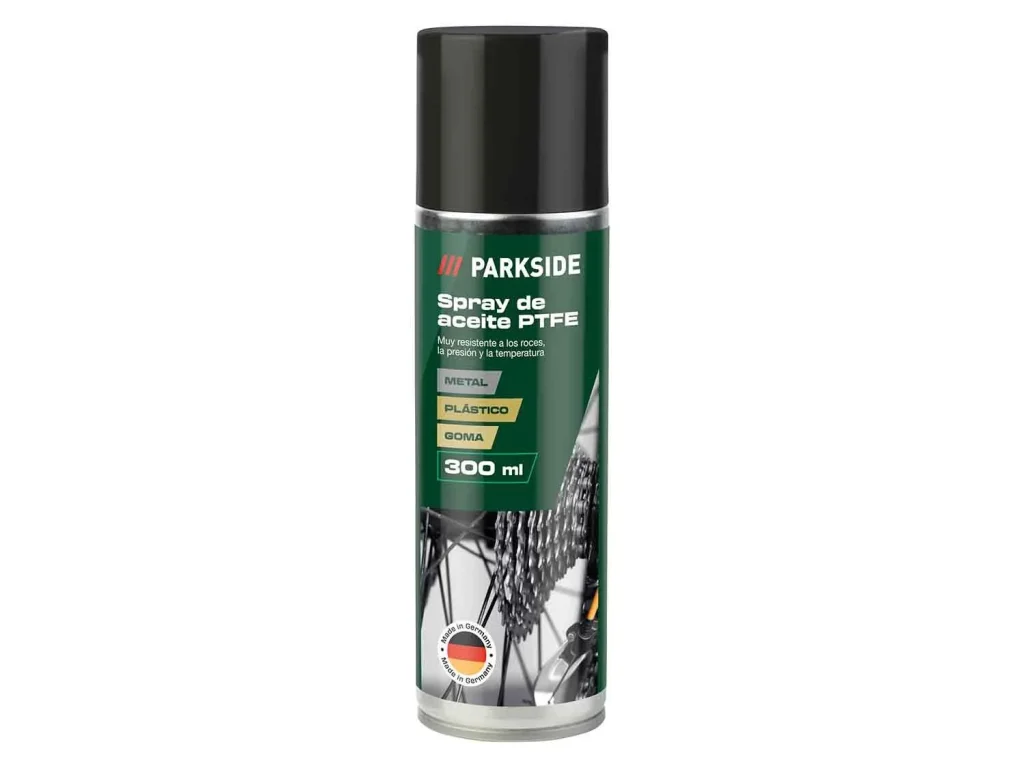 Otro de los accesorios que van a llevar a tienda este próximo 20 de Enero y que habrá que ir a tienda es el spray lubricante de la marca Parkside. Entre los artículos que van a llevar tienes el aceite de grafito que evita que las piezas chirríen al moverse, la grasa de litio que lubrica piezas móviles y superficies deslizantes Y aceite PTFE que repele el agua a un precio de 3.99€ entre otros de capacidad 300 ml cada uno.